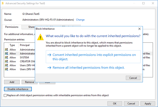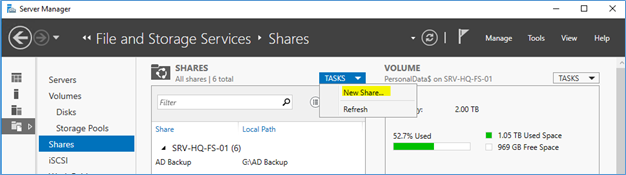 Continuing with previous post I’m using the Windows Server 2016 File Server Resource Manager in a domain environment to configure share folders.
