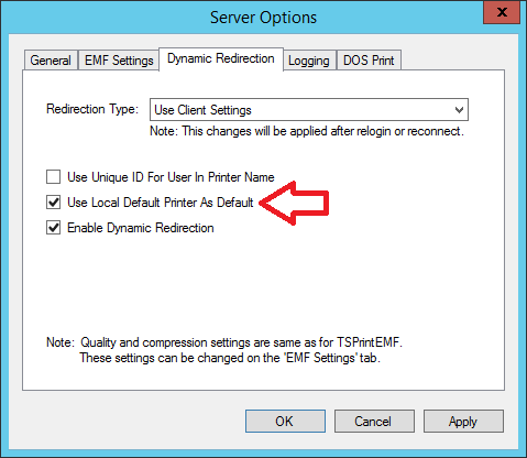 If you prefer dynamic redirection over our virtual printers, you can avoid TSPrint Default as a default printer and use your dynamically redirected printer in your remote desktop session.