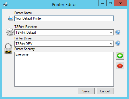 Printer Name – this one is quite self-explanatory, let's say we'll replace the TSPrint Default with the printer we're creating now, so I'll call it „Your Default Printer. “