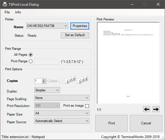P.S. The "OutputDir" option is also called "silent printing option", to force TSPrint PDF to print silently simply insert the following in the extension.ini file: