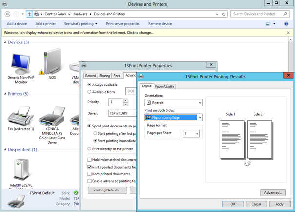 You're now all set for duplex printing as your default printing method for every document. Just make sure every user logs off and back on for that option to be applied to everyone.