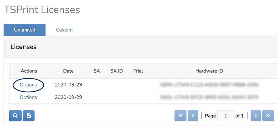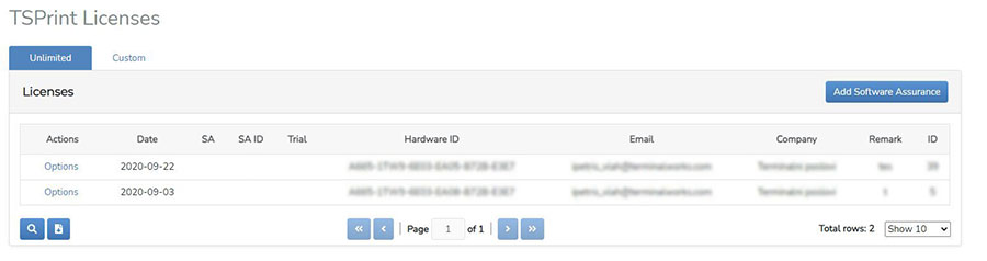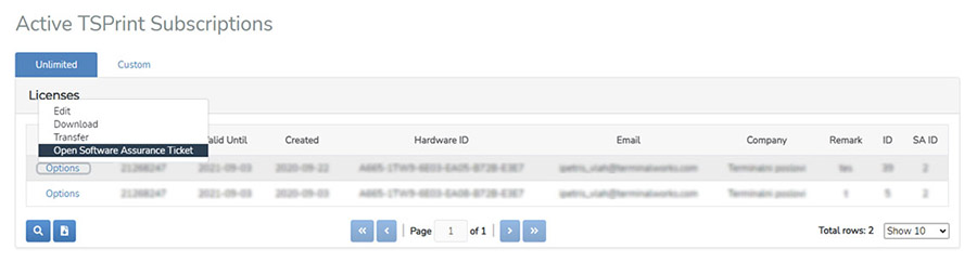 To add Software Assurance to your existing license, navigate to the list of generated licenses.